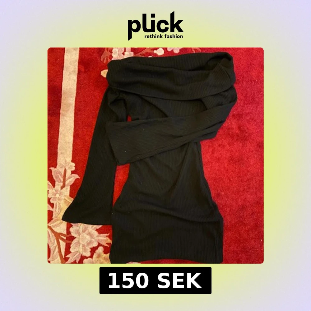 säljer en svart ribbad klänning med offshoulder-design och långa utsvängda ärmar!! figurnära klänning som sitter snyggt!