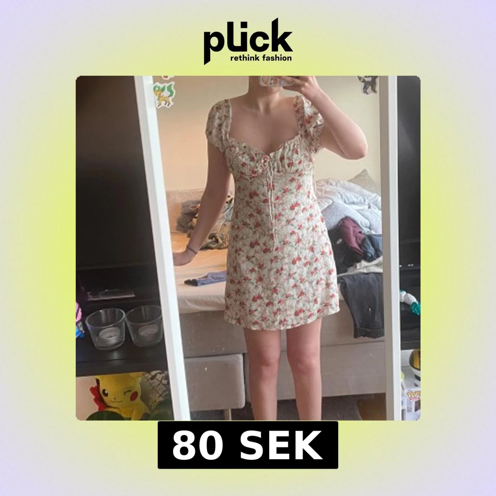 Blommig kortklĂ€nning!đč KlĂ€nningen har puffĂ€rmar, snörning framtill och en lĂ€tt urringning. Materialet kĂ€nns som tunn polyester, perfekt för varma dagar. Snygg öppen rygg och figurnĂ€ra passform. OBS: FrĂ„n SHEIN(nĂ„gra Ă„r gammal), men kvaliteten kĂ€nns okej!
