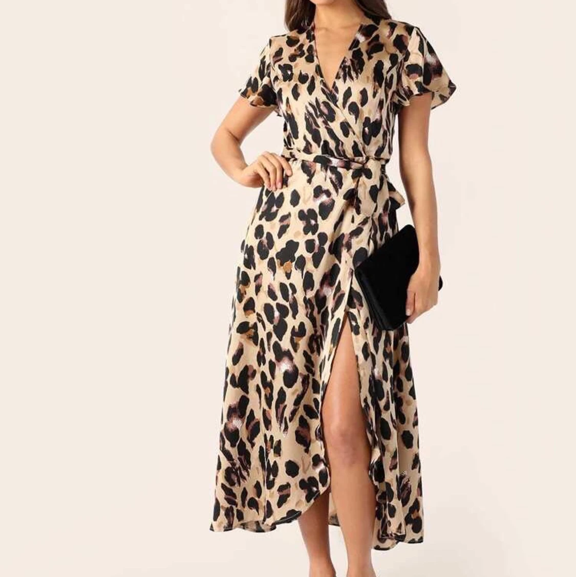 Leopard klänning i omlott från SHEIN. Storlek 38-40. Säljes då den är alldeles för liten för mig, så skulle säga att den är mer 36-38 i storlek. Aldrig använd! Köpare står för frakt.