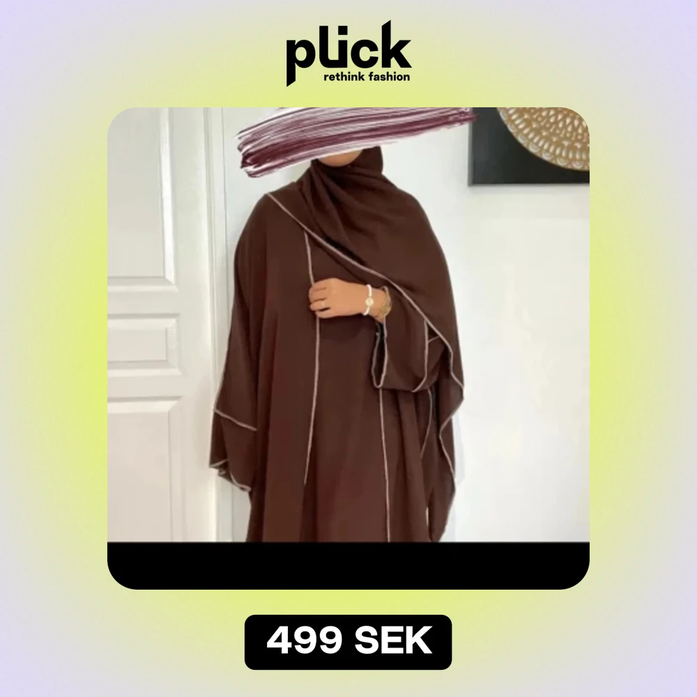 Hej, detta är en 3 sett abaya där underklänning och sjal ingår, den är helt ny, paketet kom igår och hade beställt för många, de finns i både svart och brun… kontakta mig för storlek för de beror på din längd💕