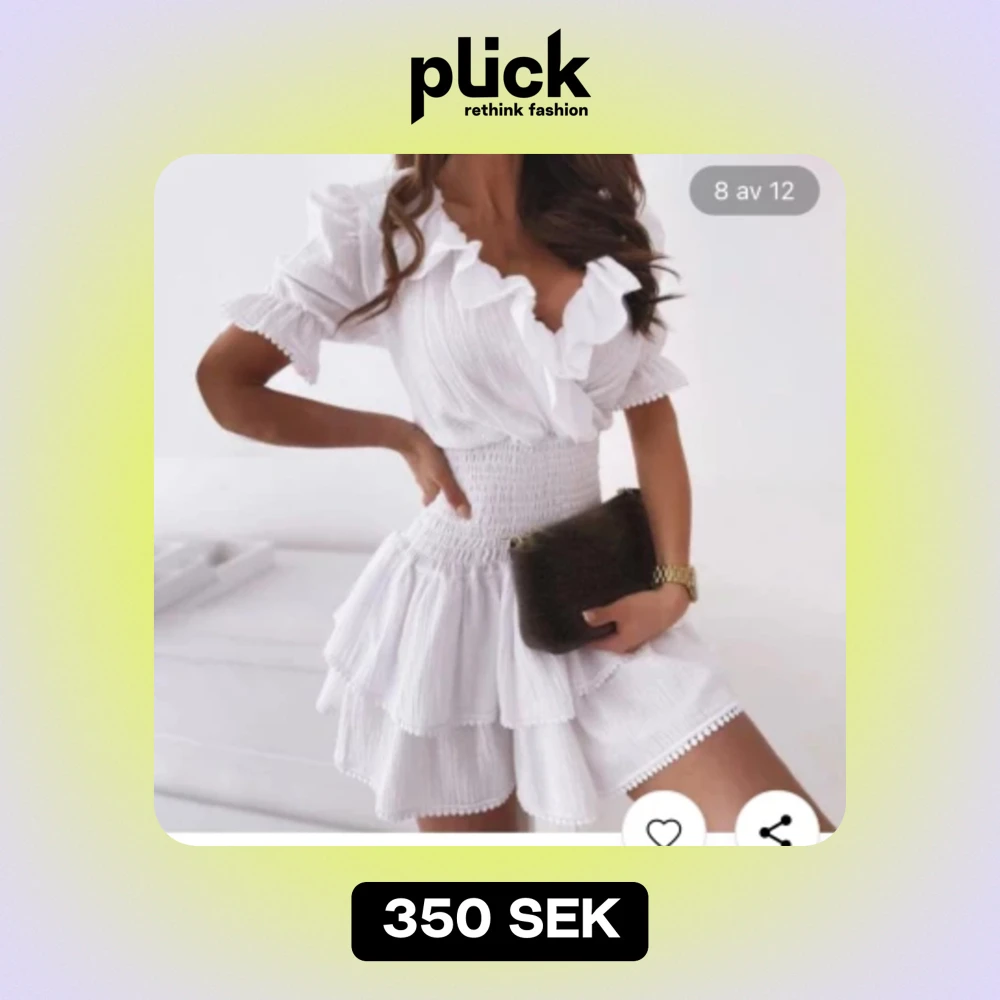 Köpte klĂ€nningen för studenten men hittade ett annat alternativ och sĂ€ljer dĂ€rför klĂ€nningenđ. Den Ă€r oanvĂ€nd och i 10/10 skick och superfin till bĂ„de student och midsommarđ©·.Köpte den i XS men eftersom tyget Ă€r stretshigt funkar den till Sđ«.