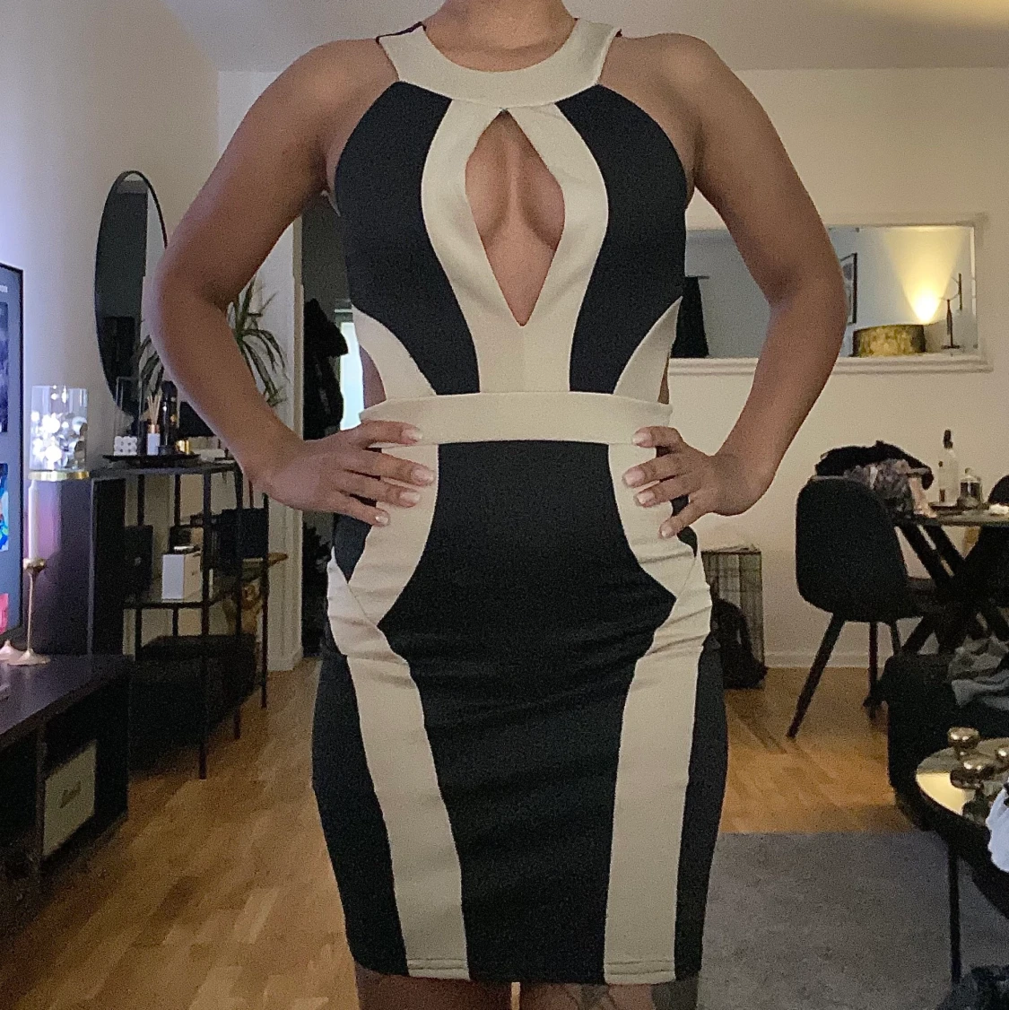 En fest klänning väldig tajt och öppen liten urringad i mitten stretchig material