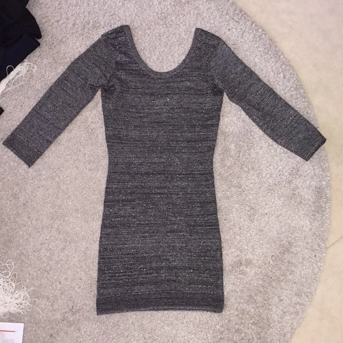 Snygg klänning med fin skurning vid hals och lägre urringning där bak. Köpt från Bershka. Oanvänd
