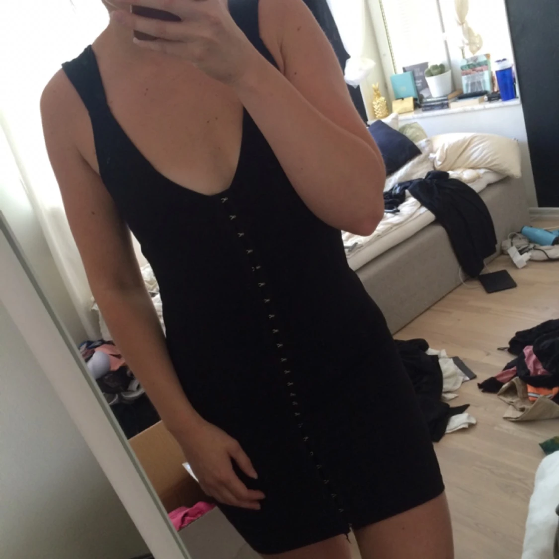 Bandageklänning med silver detaljer längst framsidan.