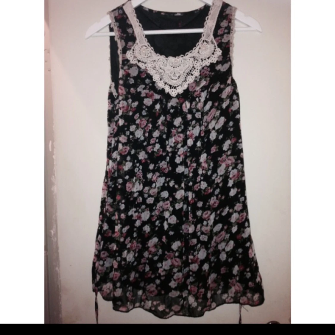 Blommig klänning med pärlor och glitter vid bröstet!
