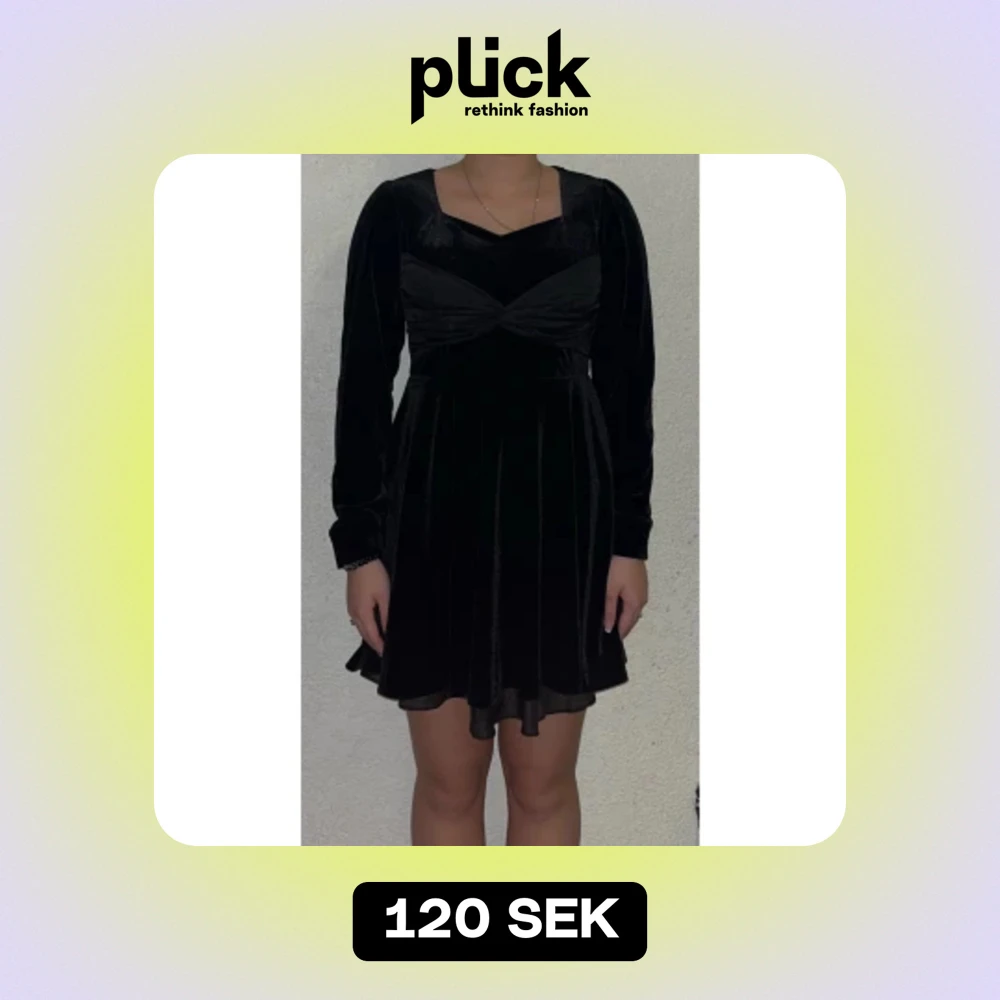 Svart sammetklänning med fin detalj i mitten. Jag köpte den här klänningen i Vietnam, men den har aldrig använts och är i toppskick. För referens är jag 166 cm lång och väger 66 kg.