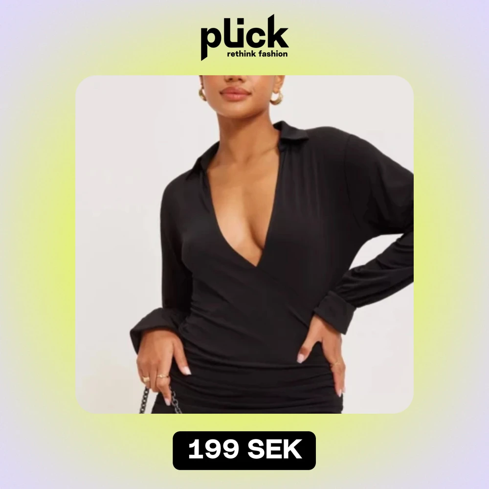 Aldrig använd Klänning från NLY i storlek Small. Slutsåld överallt Stretchigt material i trikå Omlottdesign Kort modell Nypris 399