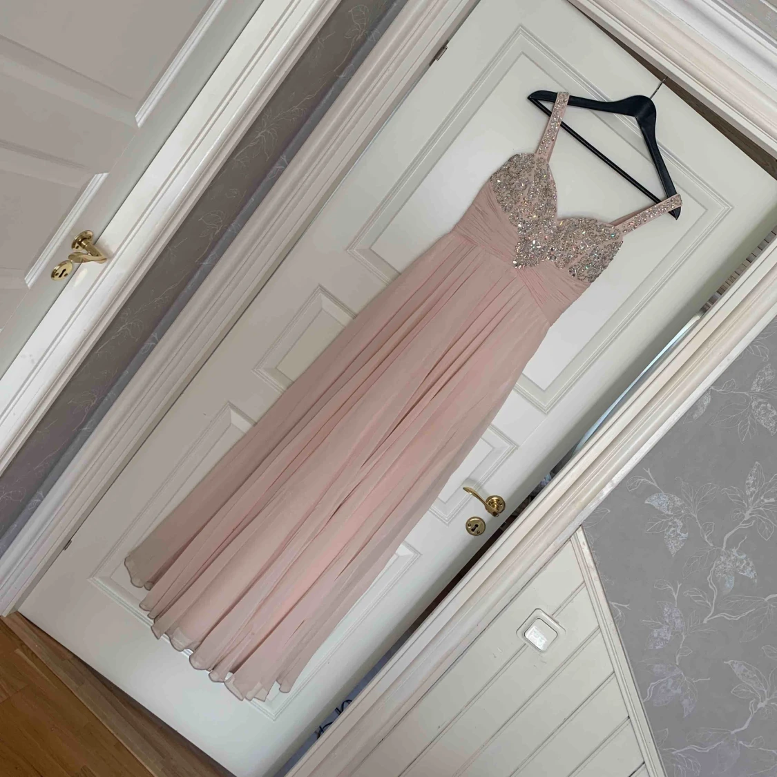 Säljer nu min fina balklänning! Lite smuts i nedkant men som säkert går att tvätta på något sätt! Annars i nyskick! Passar mig som har M och BH storlek 75C! Kontakta vid frågor! Frakt tillkommer!