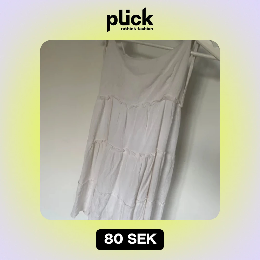 Säljer en superfin vit sommarklänning i storlek S. Den har en luftig och bekväm passform med volanger som ger en romantisk känsla. Perfekt för varma sommardagar eller en avslappnad fest. Klänningen är ärmlös och har smala axelband.