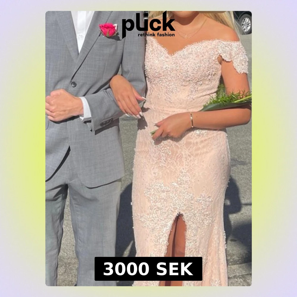 Säljer en vacker ljusrosa klänning i spets med figurnära passform och slits framtill. Använd 1 gång, i mycket fint skick. Perfekt till balen😍 Bekväm att bära och sitter väldigt smickrande på kroppen. Den har ett tungt och exklusivt fall som gör att den sitter otroligt fint på kroppen. Tyget är lite tjockare vilket gör att den känns lyxig och inte genomskinlig. Den faller väldigt elegant när man går ✨ Jag är 164 cm och den satt perfek