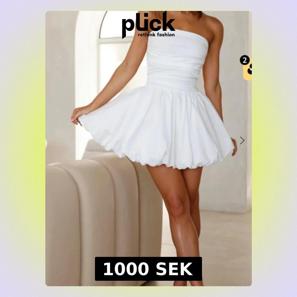 Säljer denna otroligt fina klänning från Hello Molly då den tyvärr är för liten för mig. Perfekt till bal, student, examen, sommarfest eller andra festliga tillfällen. Klänningen är axelbandslös med en smickrande passform och har en söt ballongkjol som ger en elegant och feminin look. På baksidan finns en stor rosett som gör klänningen extra unik och fin.