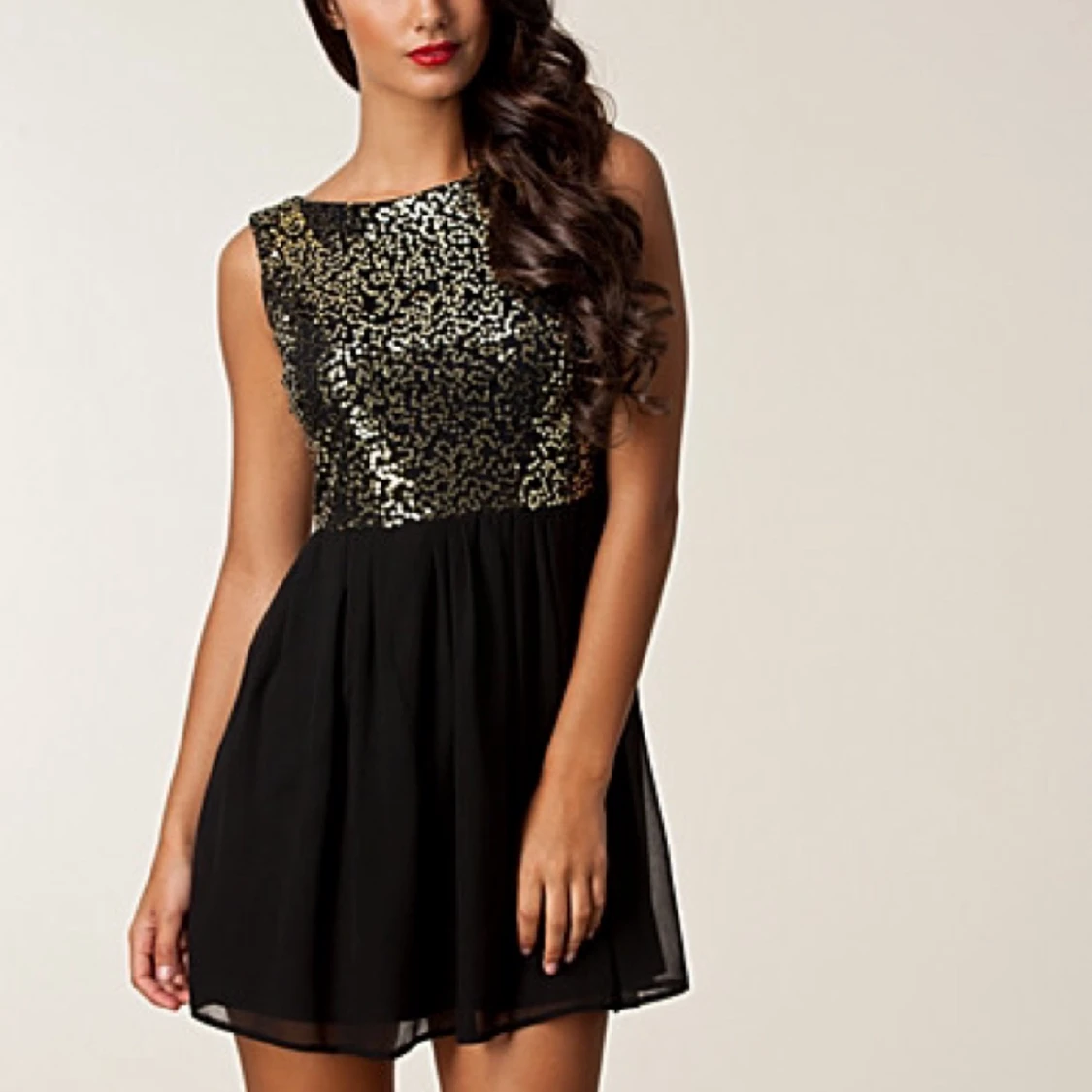 Svart festklänning med paljetter, märke Elise Ryan men köpt på Nelly. Använd en gång.