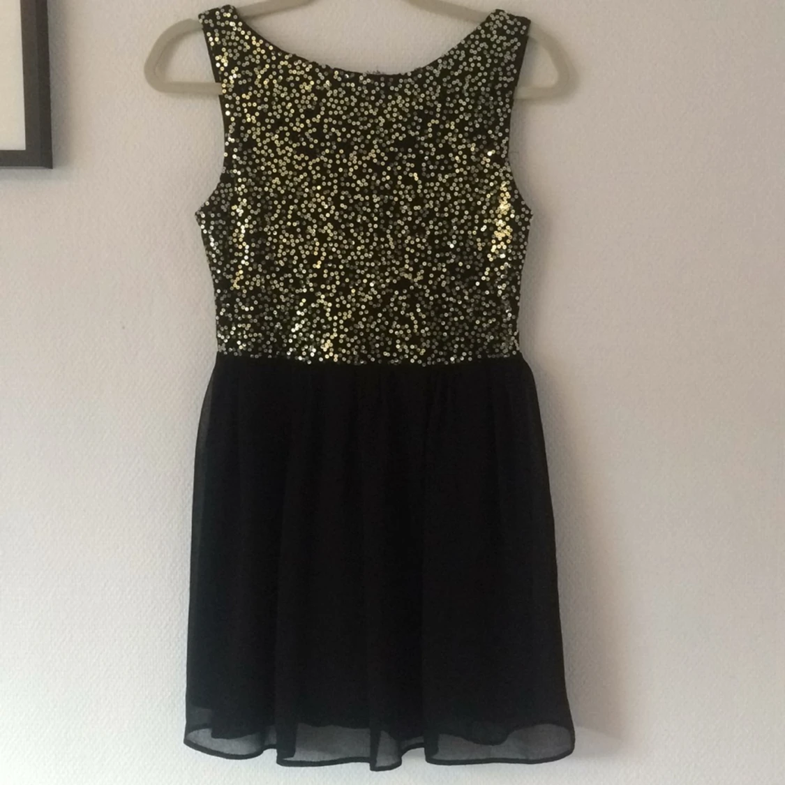 Svart festklänning med guldiga detaljer från Elise Ryan. Använd fåtal gånger, perfekt till nyår!