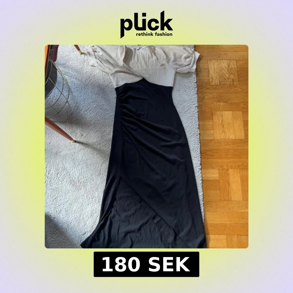 Långklänning från Ellos med slits. Ribbad beige överdel. Klänningen har korta ärmar. Aldirg använd prislapp sitter kvar