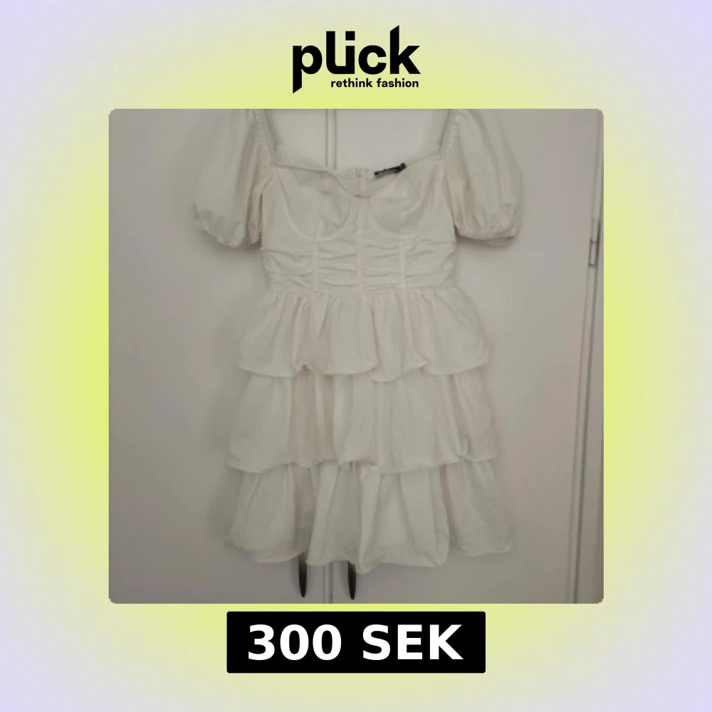 Superfin vit kortklänning med volanger och puffärmar från PrettyLittleThing. Klänningen har markerad byst, rynkade detaljer och dragkedja i ryggen. Perfekt för sommarens alla tillfällen och ger en romantisk vibe.