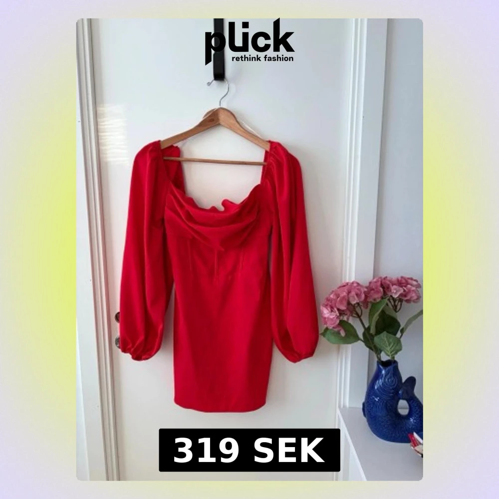 Fin röd klänning från Princess Polly med långa puffärmar och draperad halsringning. Klänningen har en figurnära passform och dragkedja i ryggen. Perfekt för dig som vill sticka ut med röd. Endast testad, aldrig använd Bust: 91cm Waist: 73cm Hip: 99cm Corset style Cowl neck Boning through waist Puff sleeves Invisible zip fastening at back Non-stretch Fully lined