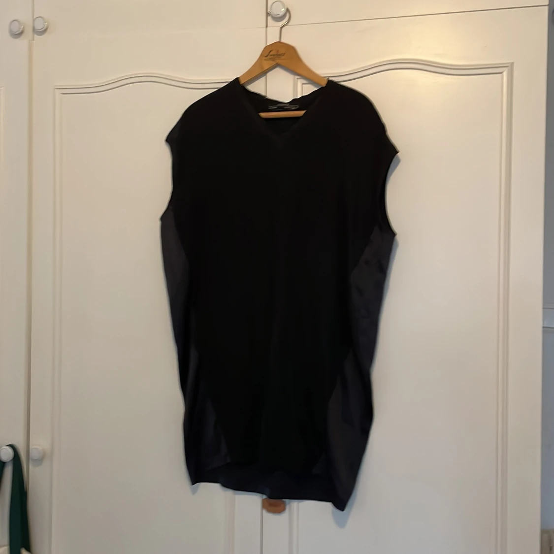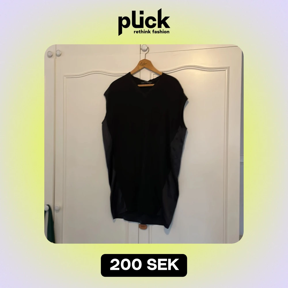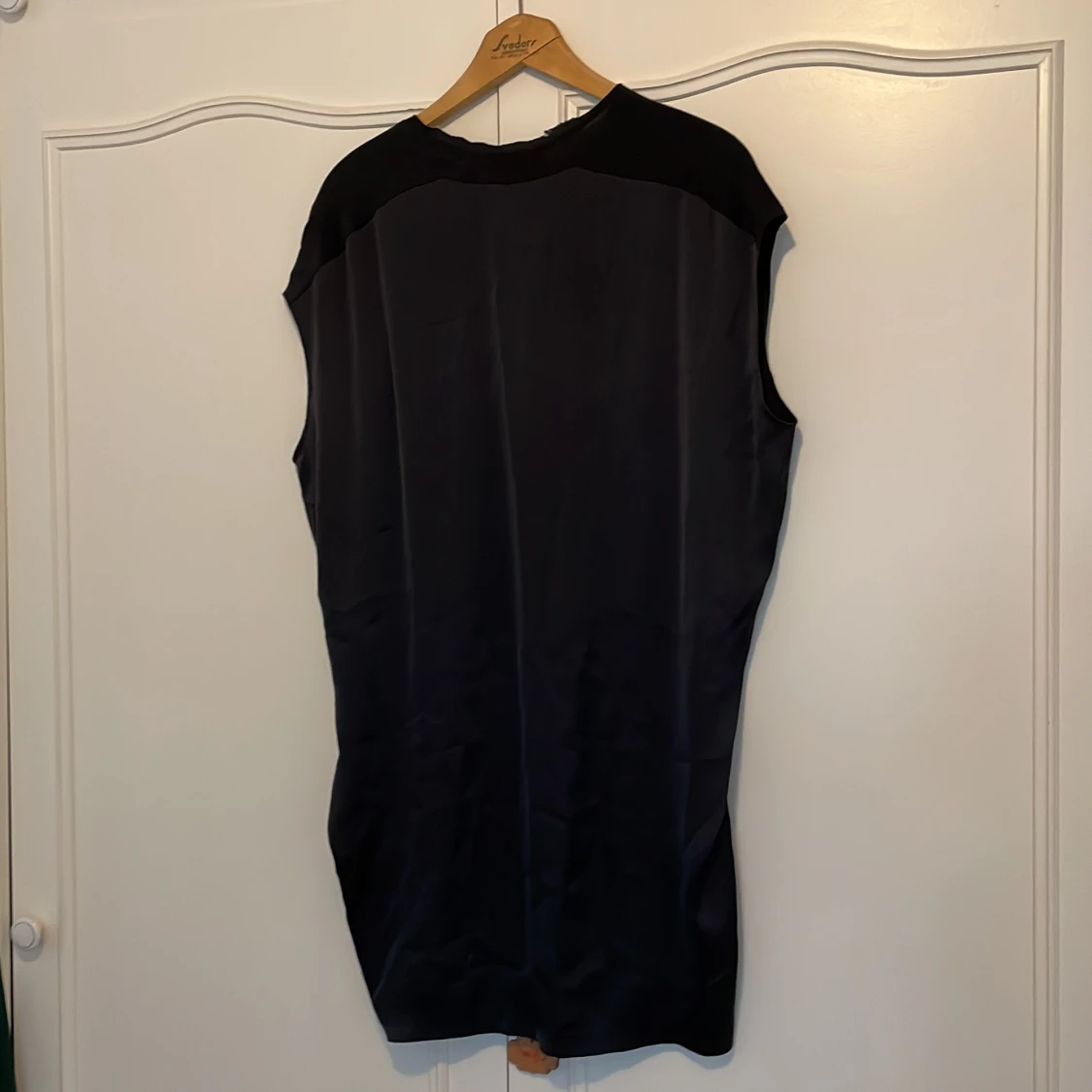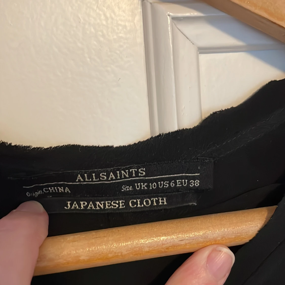 Snygg svart klänning från AllSaints i japanskt raw silke. Den är ärmlös och har en stilren design som passar perfekt för både vardag och fest. Klänningen har en boxy passform och är gjord i ett otroligt fint tyg.