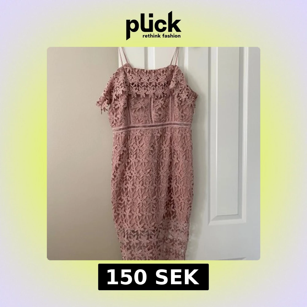 Säljer en romantisk rosa spetsklänning från New Look Premium. Klänningen har smala axelband, blommigt broderat spetsmaterial och dragkedja bak. Perfekt för sommarens tillfällen och har en feminin, figurnära passform.