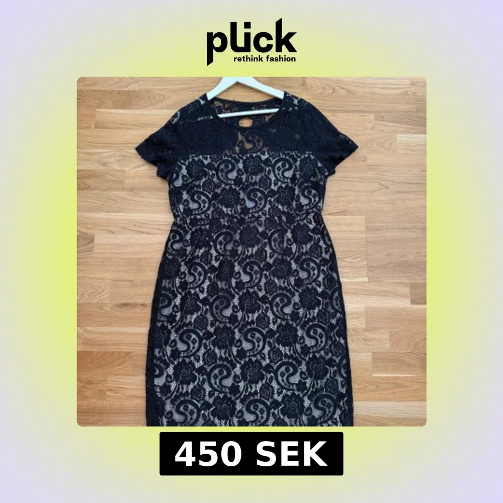 Klänningen är som helt ny och endast använd ett fåtal gånger. Storlek: 46 Supersnygg mörkblå spetsklänning från Dorothy Perkins med korta ärmar och rund hals. Klänningen har ett vackert blommigt spetsmönster och en ljus underklänning som ger en fin kontrast. Dragkedja i sidan och liten öppning bak i nacken.