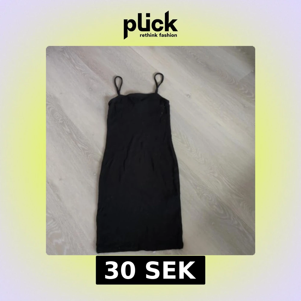 Svart tight kortklänning från Amisu i storlek 32. Klänningen har smala axelband och är tillverkad i mjuk bomull med lite stretch. Enkel och stilren modell som sitter snyggt på kroppen. Perfekt för dig som gillar minimalistisk stil.