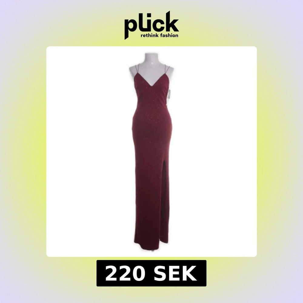 Elegant vinröd långklänning från Eve med smala axelband och en djup v-ringning. Klänningen har en slits och glittriga detaljer.
