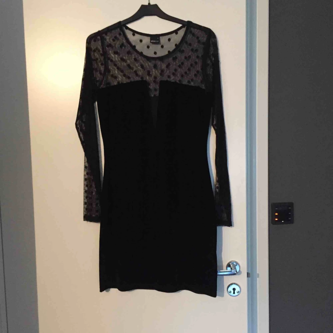 Både sammet och meshtyg i samma klänning! Jätte snygg modell, som får en att slimma av med den djupa urringningen. Tight modell men strechig att ha på sig