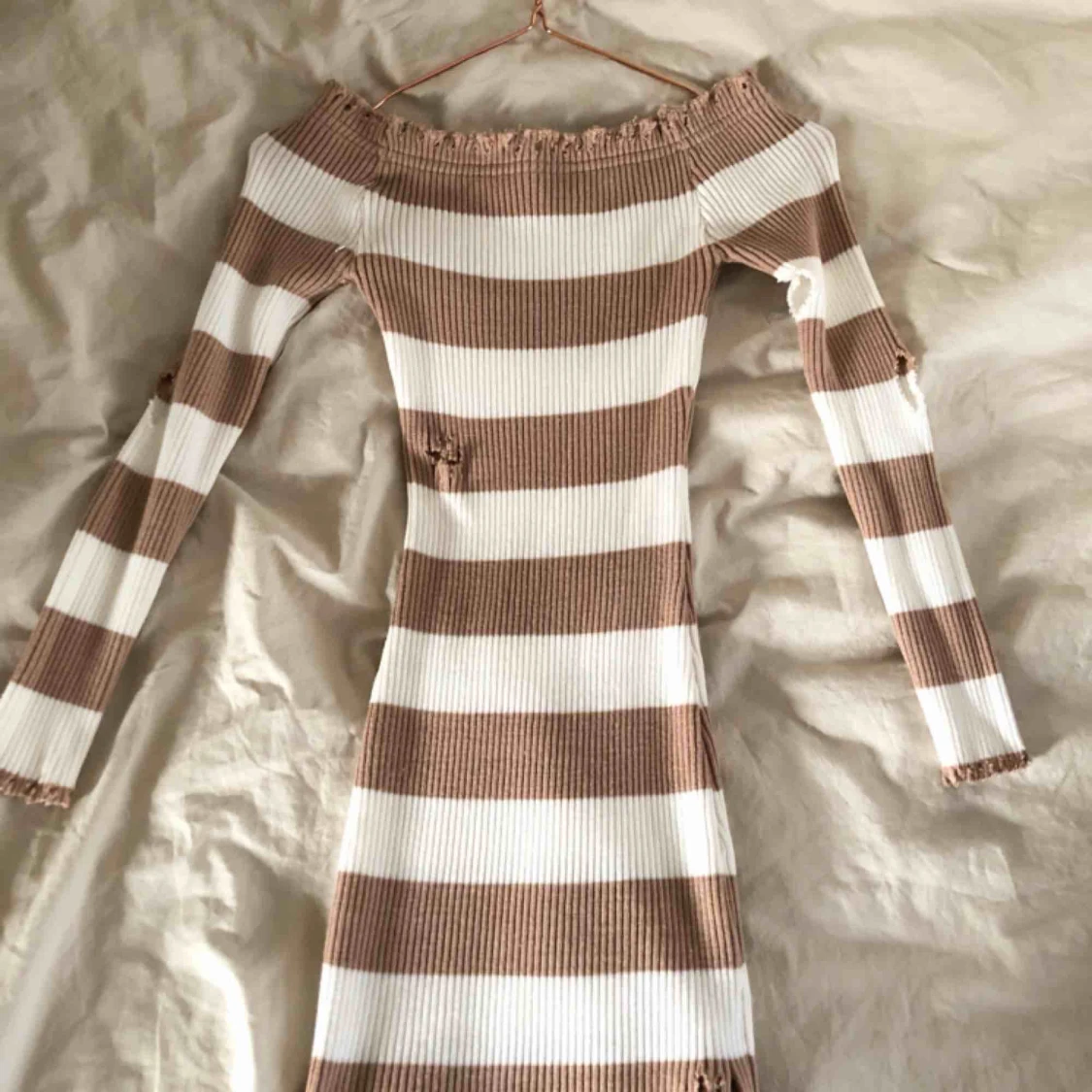Bandeau ribbad distressed vit/rosa randig klänning från Fashion Nova. Storlek XS, mycket bra skick. Skickas eller möts upp i Stockholm