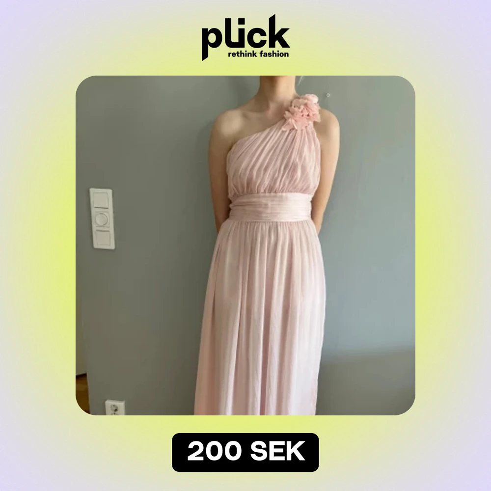 Ljusrosa balklänning med vackra blommor på ena axeln Fint skick
