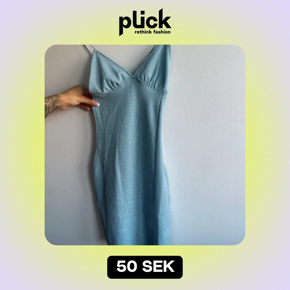 Ljusblå festklänning med spagetti band. Tajt figurform. Aldrig använd Xs