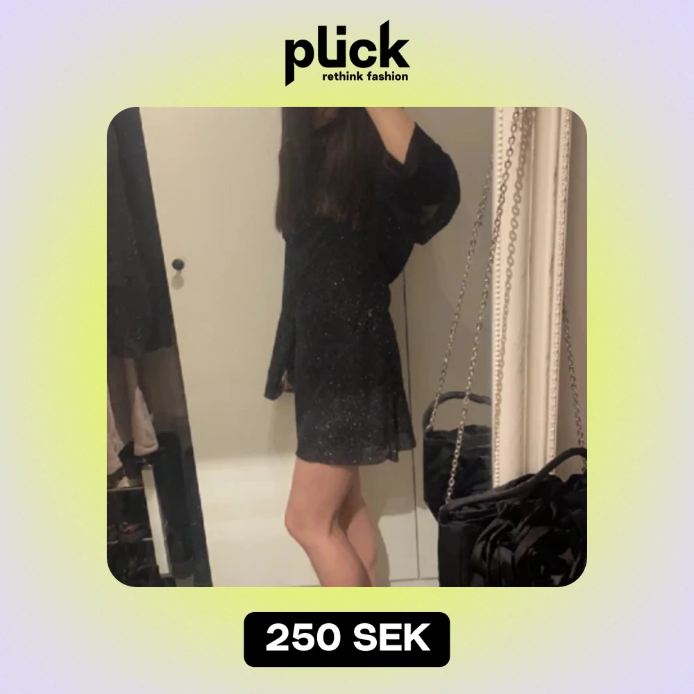 Svart glittrig klänning med öppen rygg, aldrig använd💘