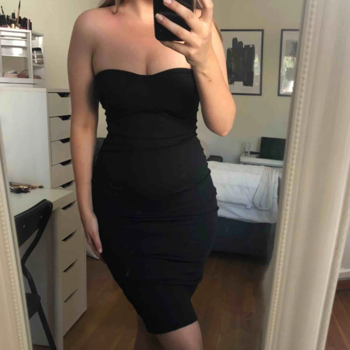 En supersnygg figurnära klänning som är helt oanvänd, lappen sitter kvar. Passar stl 34 och 36. Nypris 299kr. Frakt tillkommer☺️