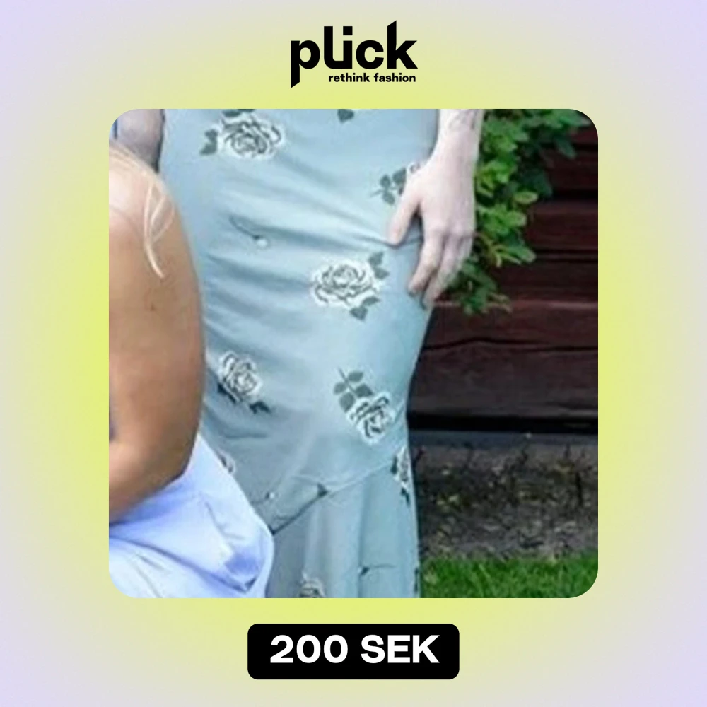 En högtidlig grön klänning med bolmstermönster. Klänningen tillkommer er band för att knyta snygg runt halsen. Använd en gång, storlek: XS