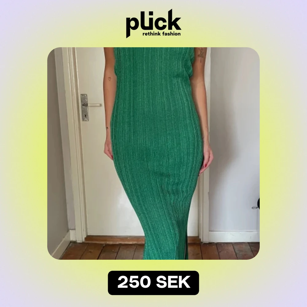 Fin grön klänning för fest eller annat. Den är sparsamt använd med en öppen rygg. Modellen har storlek S och klänningen är lite stor på henne.
