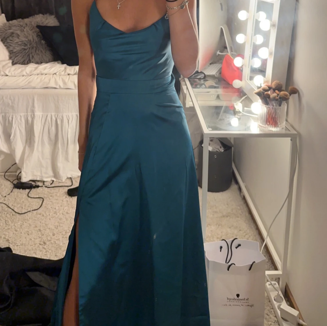 Nu säljer jag tyvärr min balklänning från 9an, silkes klänning, blå grön färg och passar super bra även till bröllop eller andra festligheter andväd 2 gånger, skriv för mer bilder å frågor, justerbar