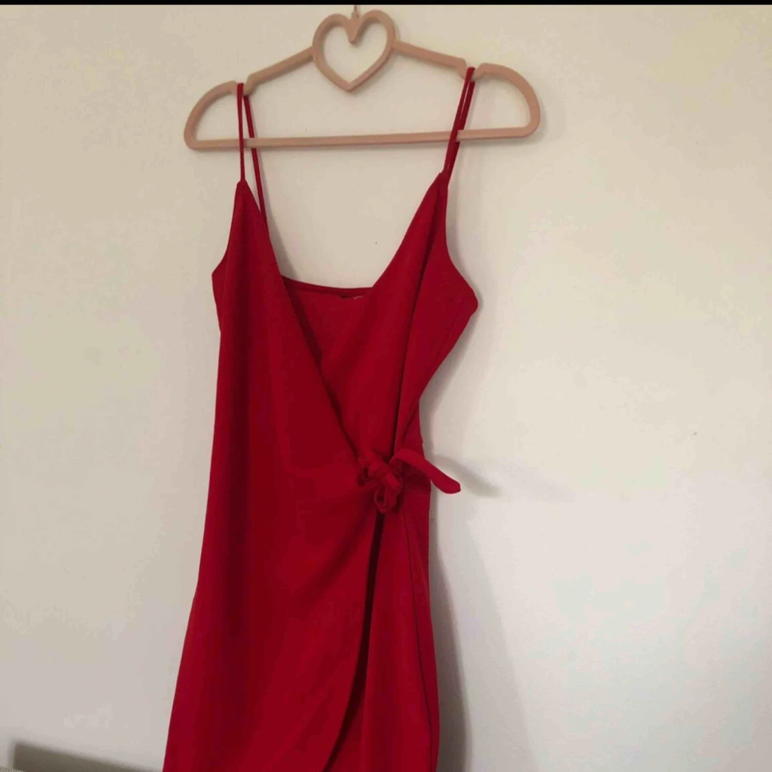 Röd omlottklänning i storlek S, aldrig använd Möts upp i Stockholm eller så betalar köparen frakten 😁