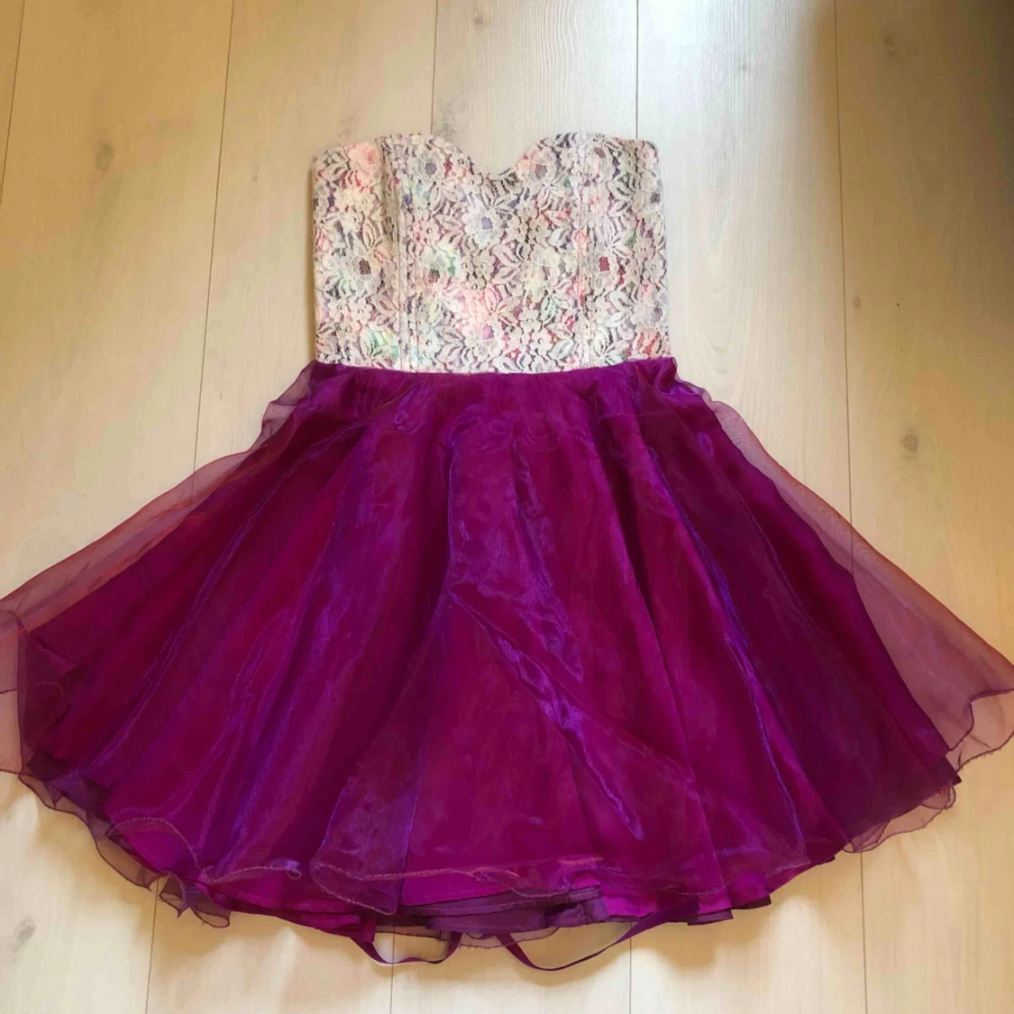Kort festklänning med korsett knytning i ryggen. Frakt ingår i priset.