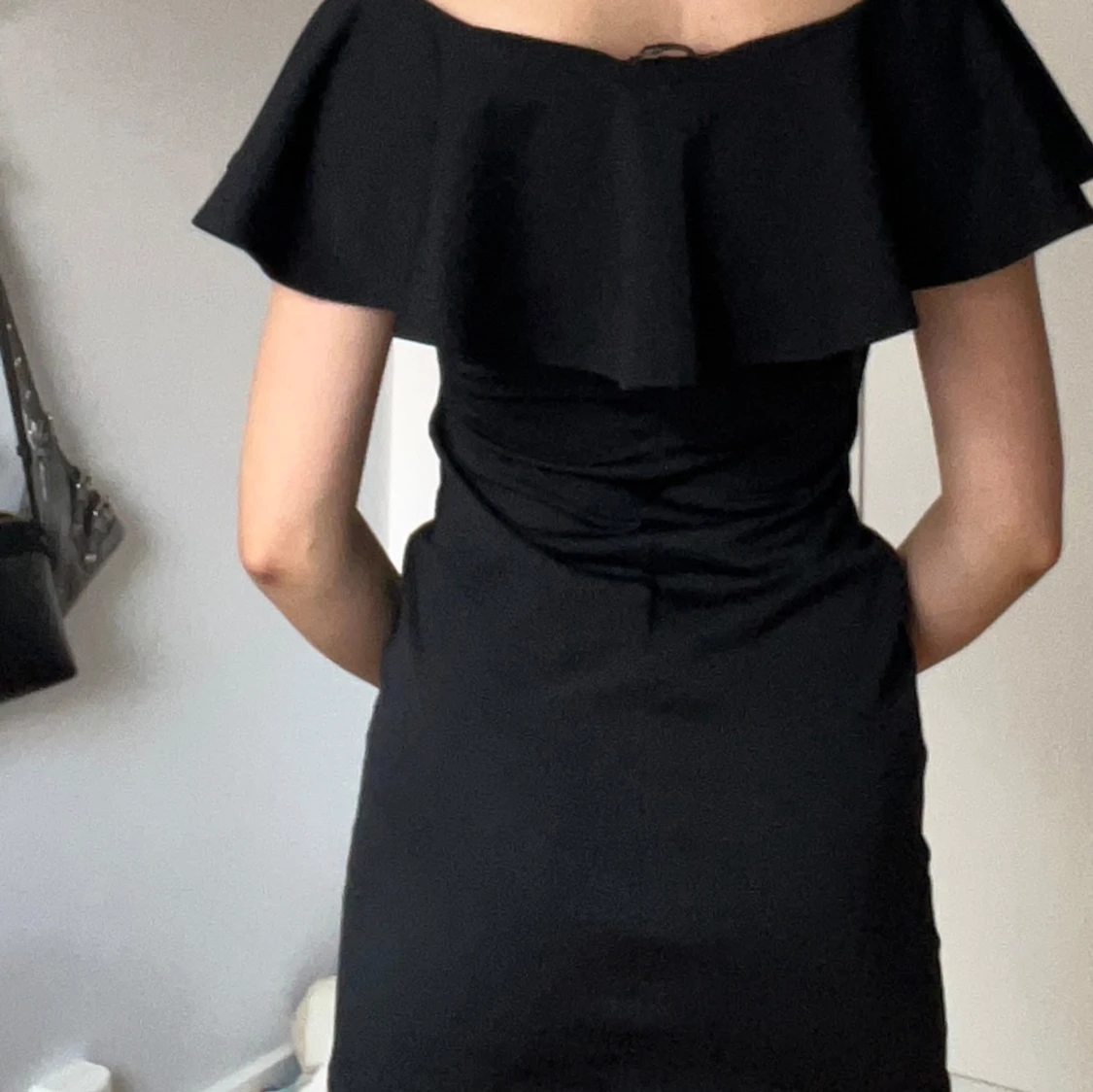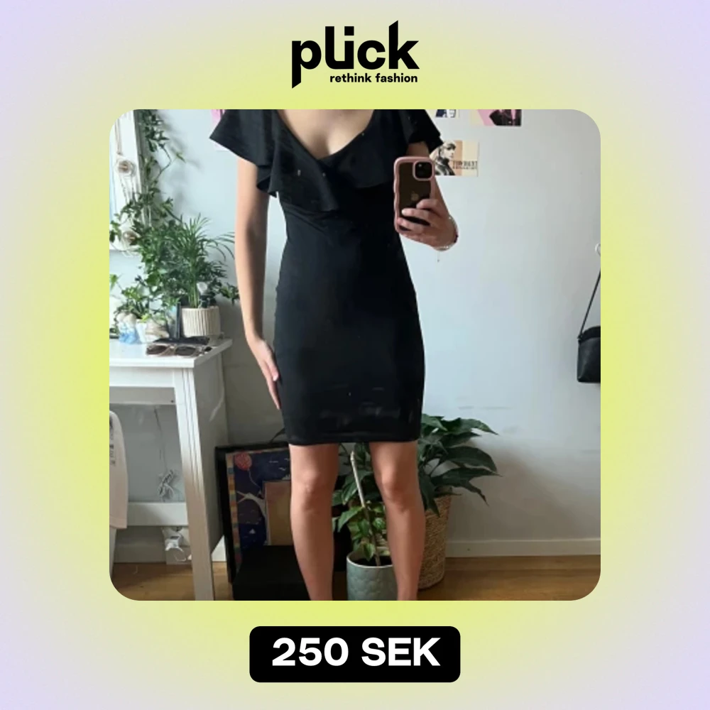 Svart festklänning med volanger från Nelly One som är köpt secondhand men som jag aldrig har använt då klänningen är för stor i bysten