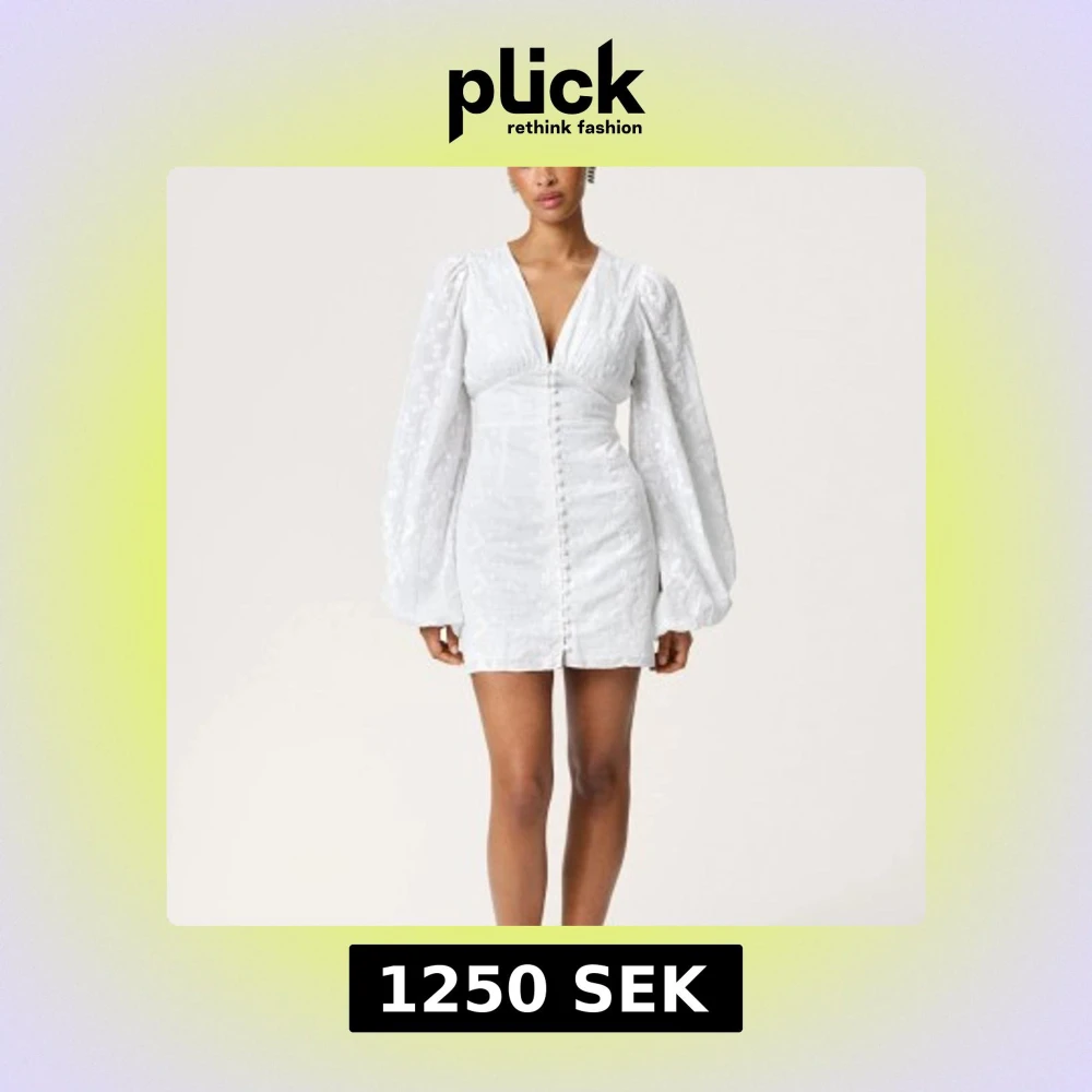Superfin vit kort klänning med v-ringning, puffiga långärmar och knappar framtill. Klänningen har broderade blommor i tyget och markerad midja för en snygg siluett. Perfekt för sommarens alla tillfällen! Helt ny adoore klänning som jag köpte till studenten men aldrig använde, alla lappar sitter fortfarande på!🌸 nypris: 1495kr mitt pris 1250kr