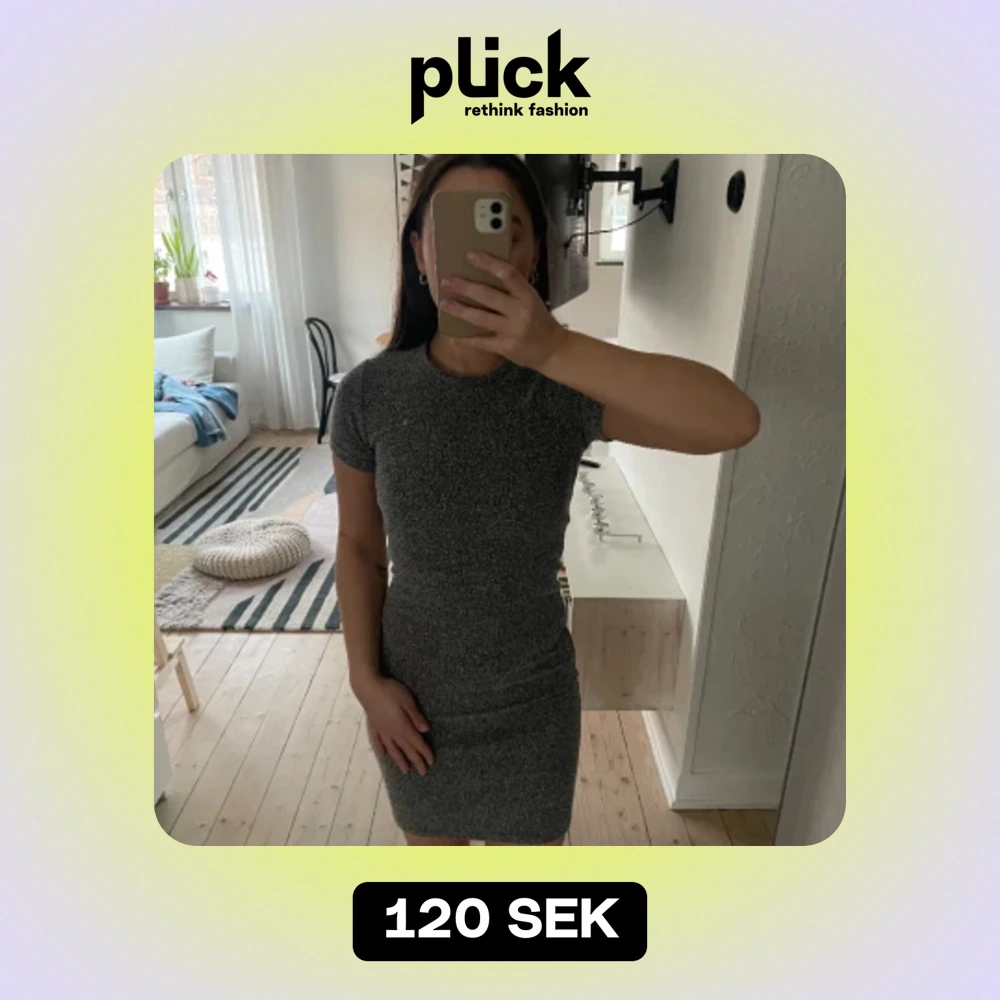 Gråsprecklig klänning som slutar mitten på låret. Kortärmad, från Bikbok i storlek XS. Använd ett par gånger, inget slitage.