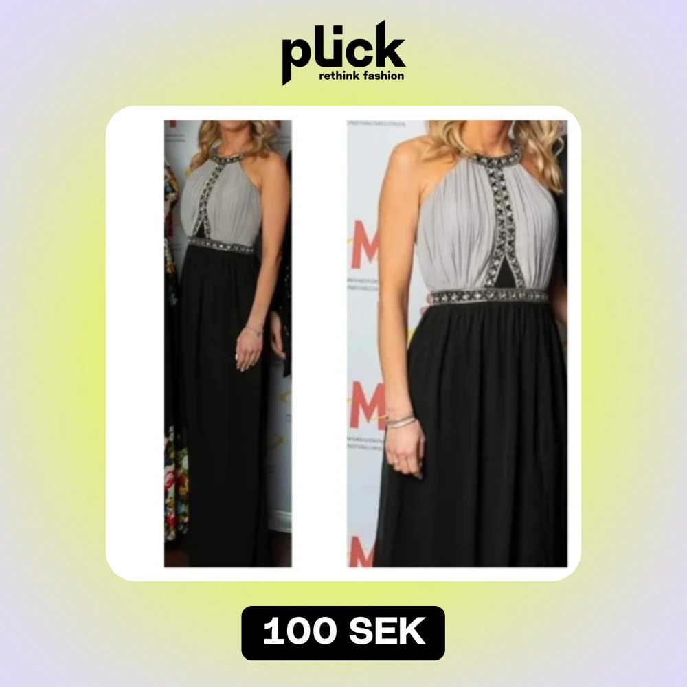 Fin klänning med strassdetaljer. Vadderade kupor. Strl 36. Fint skick. Använd endast 2 gånger. Från rökfritt hem.