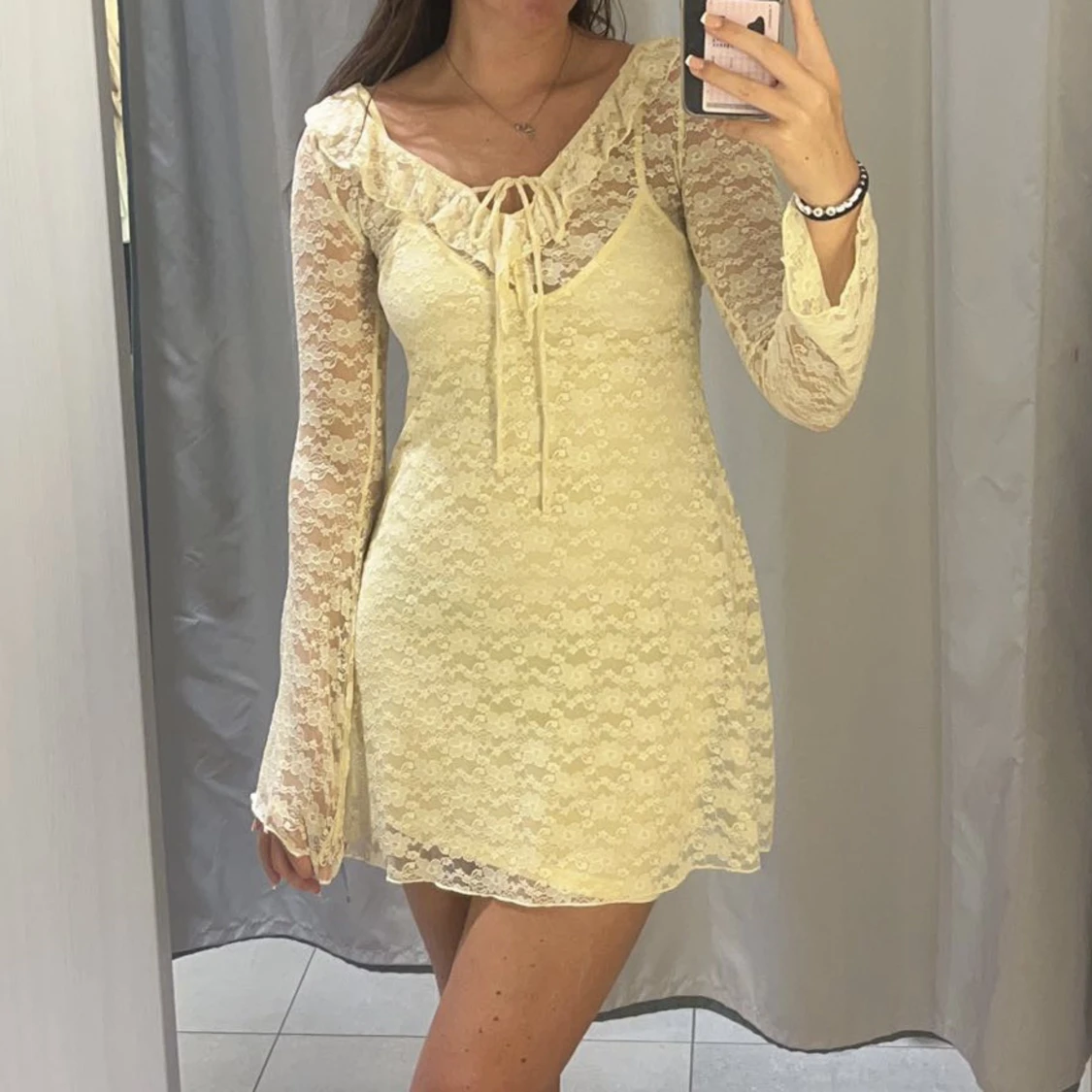 Jättefin ljusgul klänning från hm som aldrig blivit använd (prislappen är kvar). Nypris 350kr