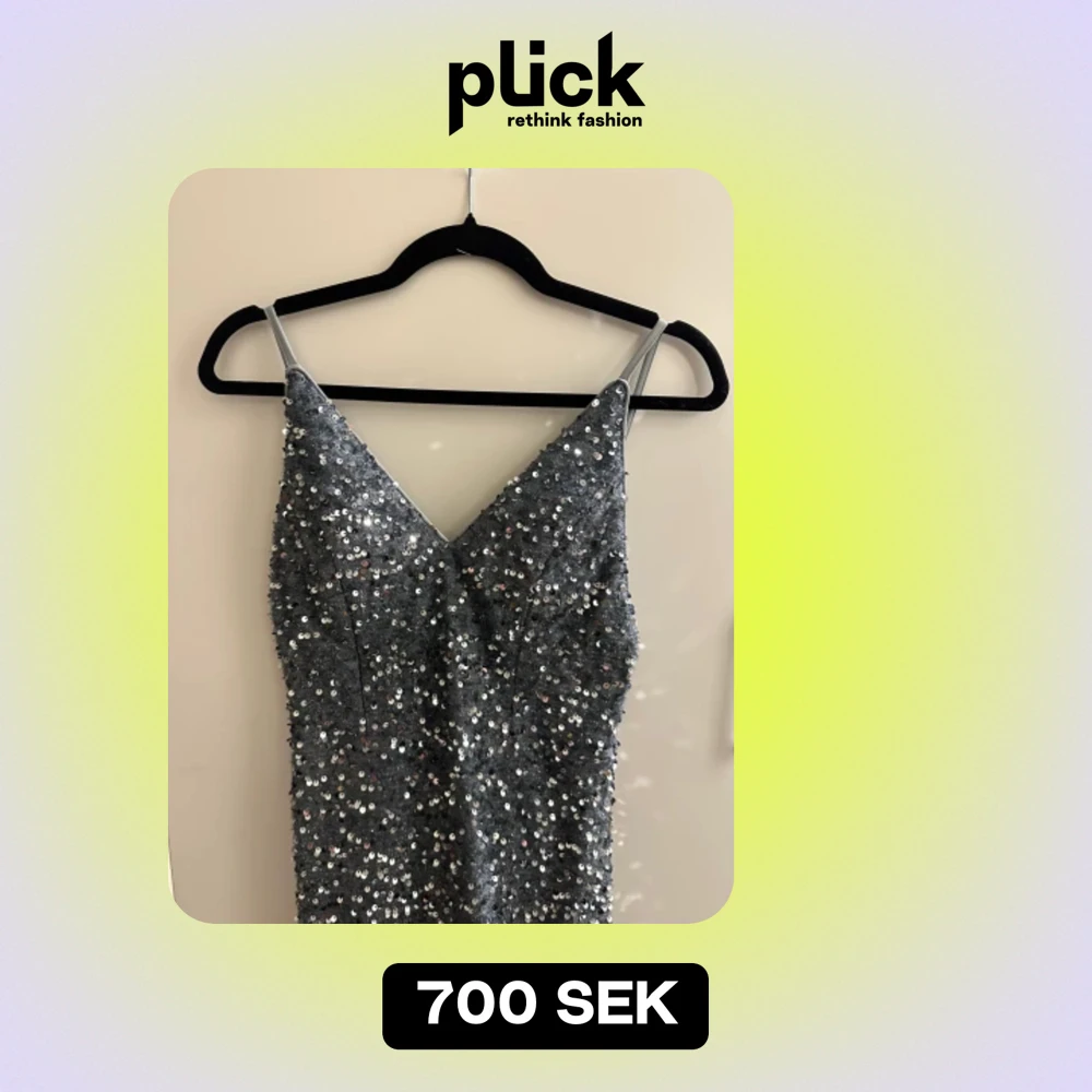 Gllittrig klänning, köpte på plick men hittade en annan som jag gillade mer så bara använd en gång av någon annan. Behövs bättre bild skriv☺️🩷