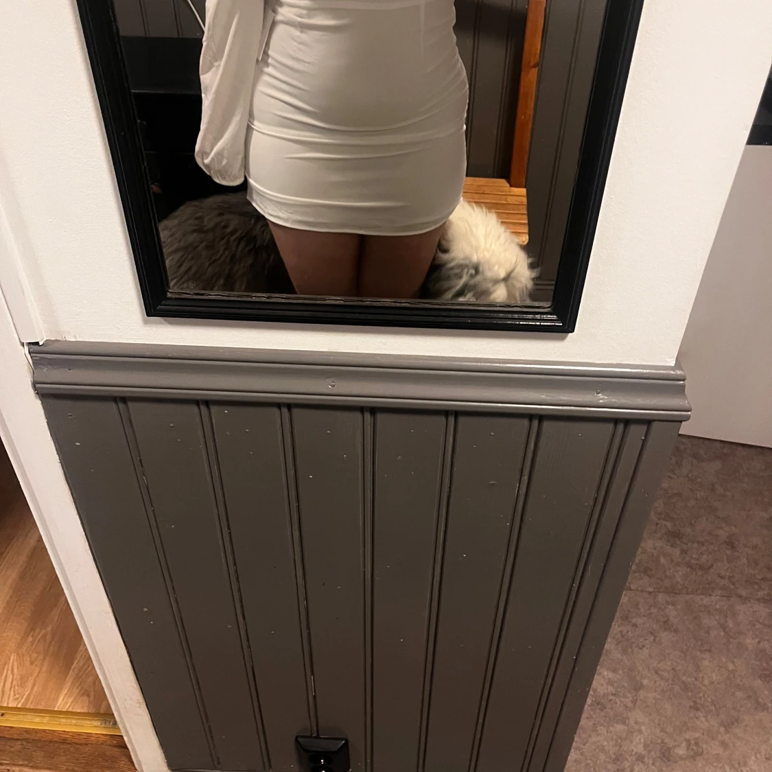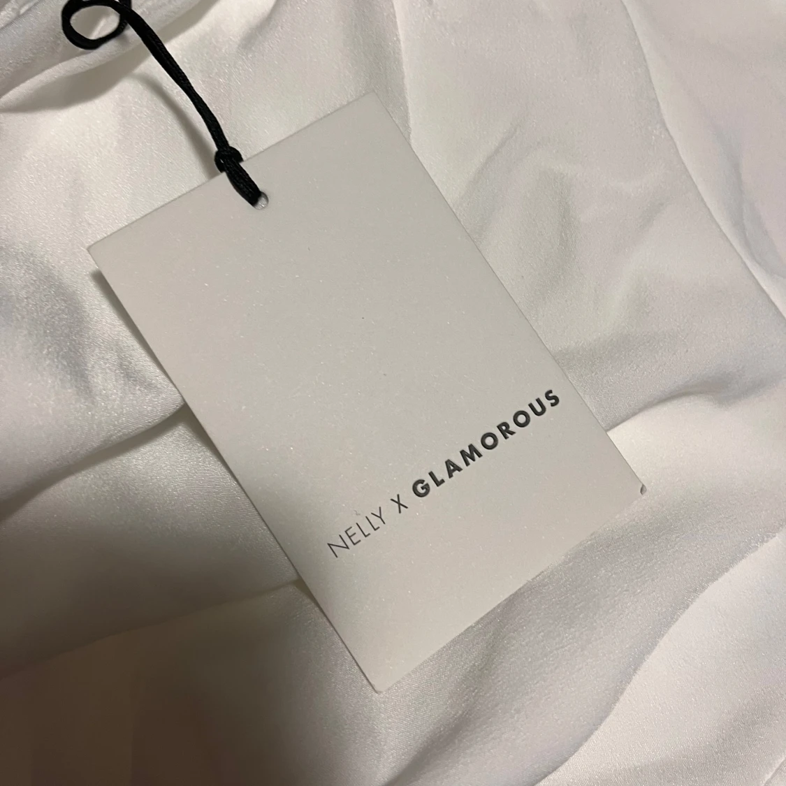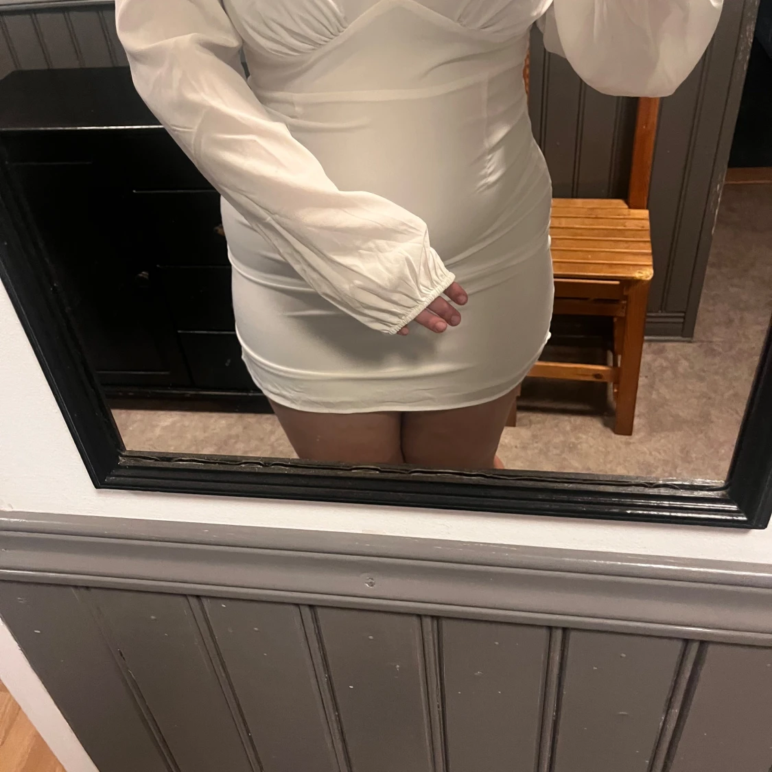 Säljer en vit, figurnära kort klänning från Nelly x Glamorous. Klänningen har långa ärmar och markerad byst, med en stilren och enkel design. Perfekt för dig som gillar en clean och modern look.