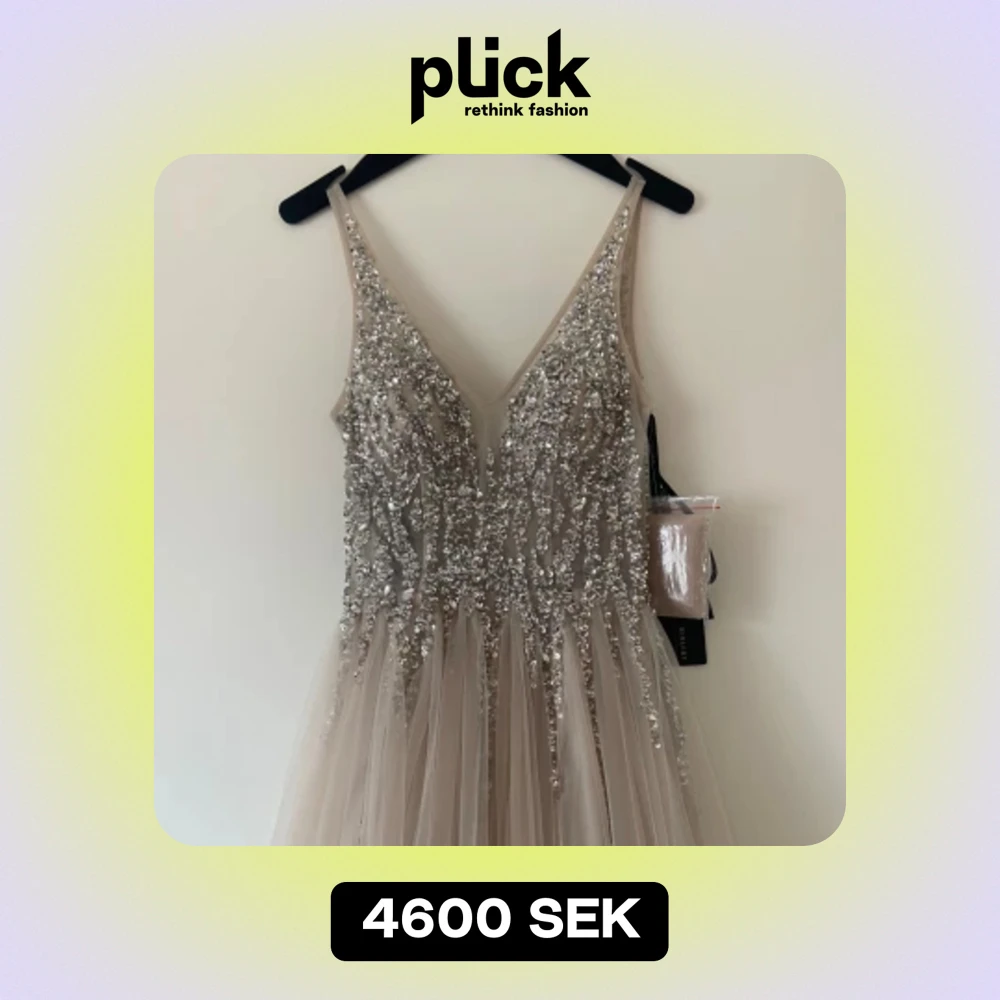 Tyllklänning från Christian Koehlert. Pärlade stenar, djup rygg och medföljande sjal. Storlek 36 men passar även för de som brukar ligga mellan 36 och 38. Prislappar kvar och endast provad, skriv för fler bilder🤍 Originalpris 5399kr