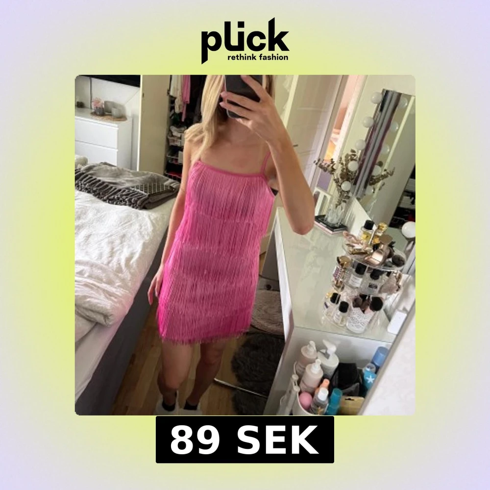 Rosa fransklänning med smala axelband, endast använd en gång! Storlek XXS men upplever den som XS