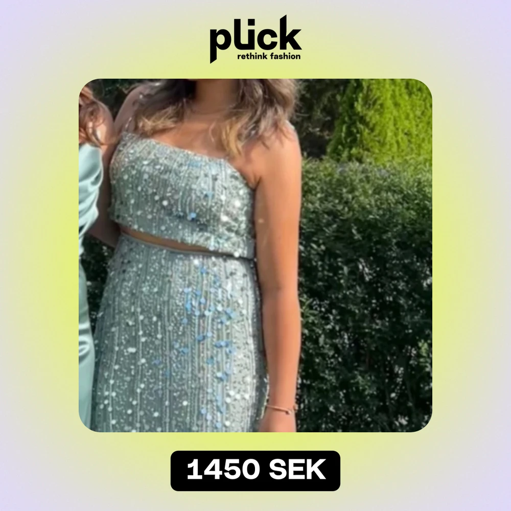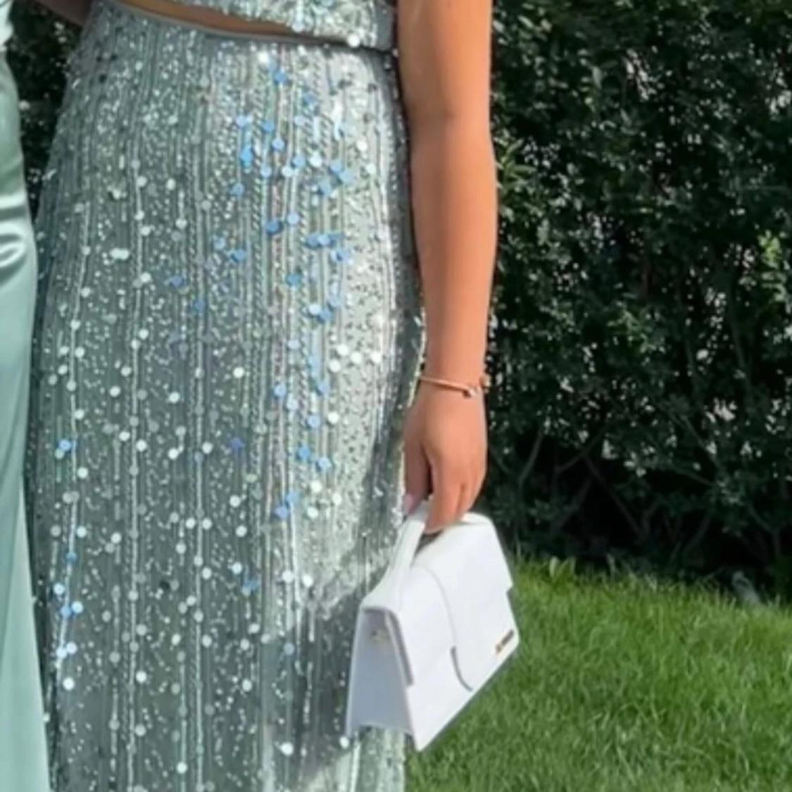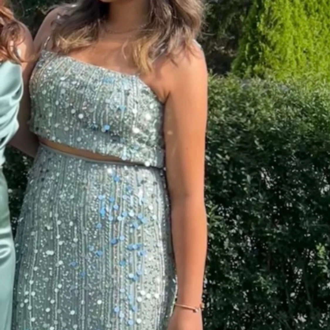 Två delad festklänning i storlek 38 med helt nytt skick och använt enbart EN kväll. toppen har jag vikt in så att den blir kortare men går att göra längre om det behövs. (Pris kan diskuteras vid snabb affär)