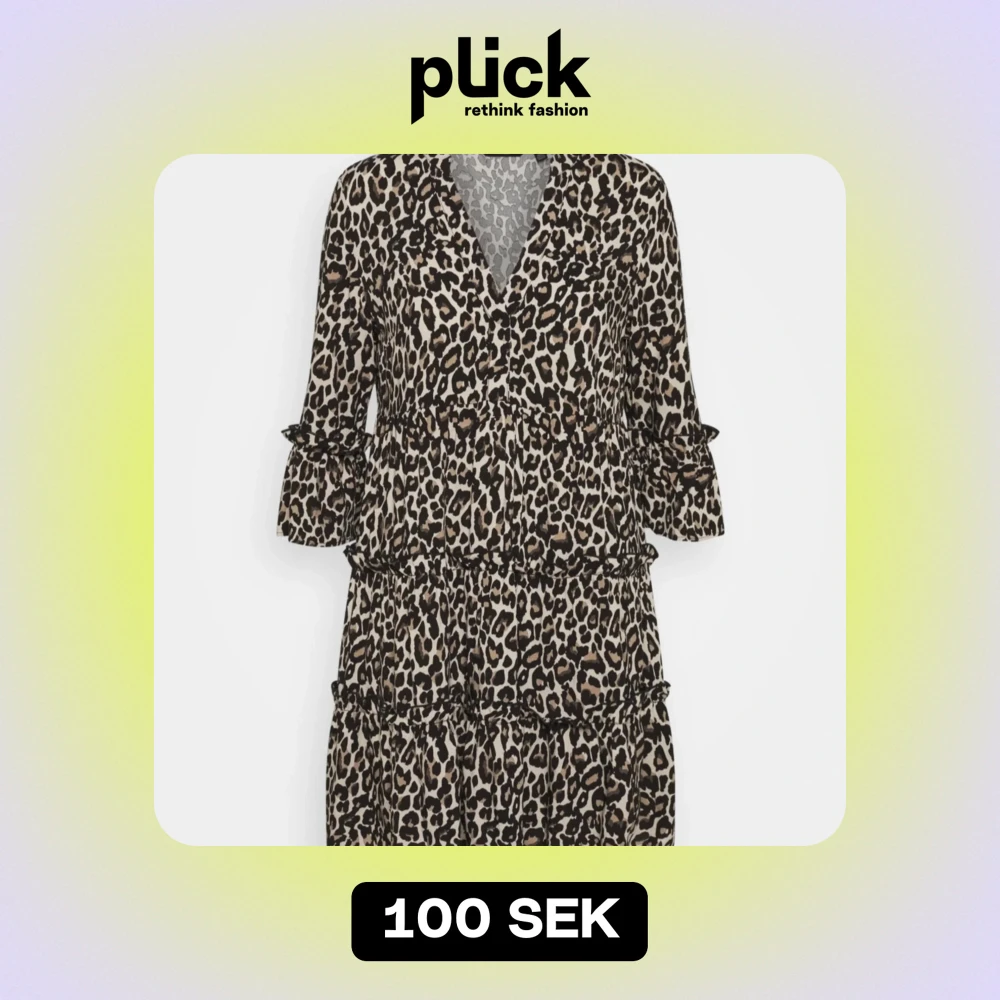 Säljer en superfin leopardmönstrad klänning med v-ringning och volanger. Den har trekvartsärmar och är perfekt för både höst och vår. Klänningen är i mycket bra skick och har en loose passform som gör den bekväm att bära. Har använt denna 2 gånger innan💗