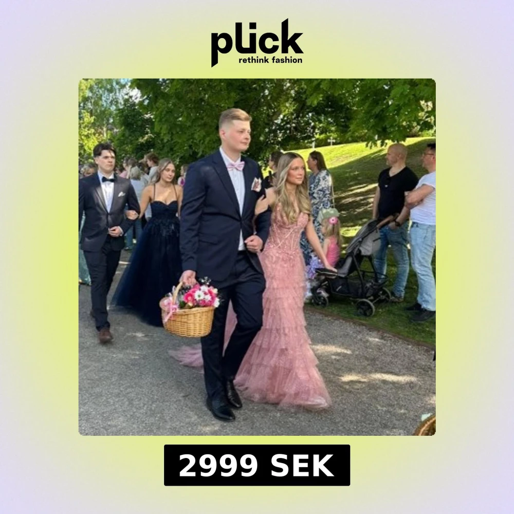 Säljer en magisk lång rosa balklänning med glittrande tyg, djup v-ringning och smala axelband. Klänningen har flera lager volanger i kjolen och korsettliknande detaljer. Perfekt för bal! Skriv vid frågor 💖