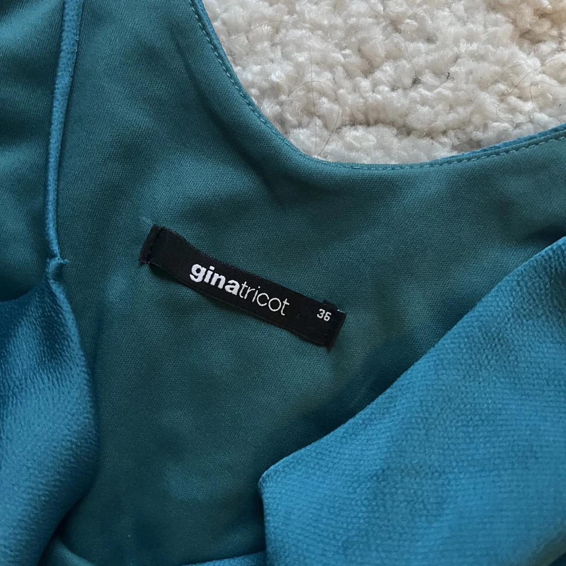 En turkos festklänning i satin från Gina tricot! Använd endast en gång därav helt i nyskick!
