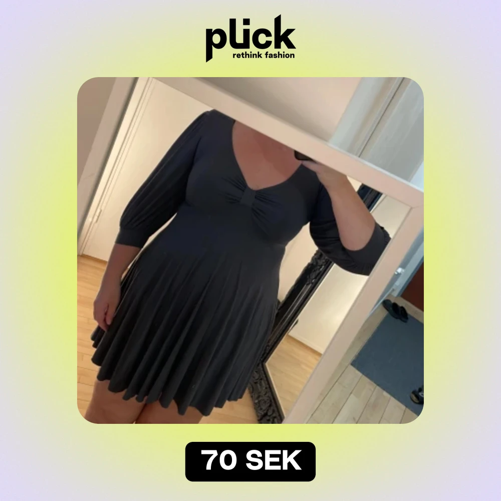 Figursmickrande klänning som markerar midjan. Trekvartsarm, v-ringad. Står storlek s men är snarare L
